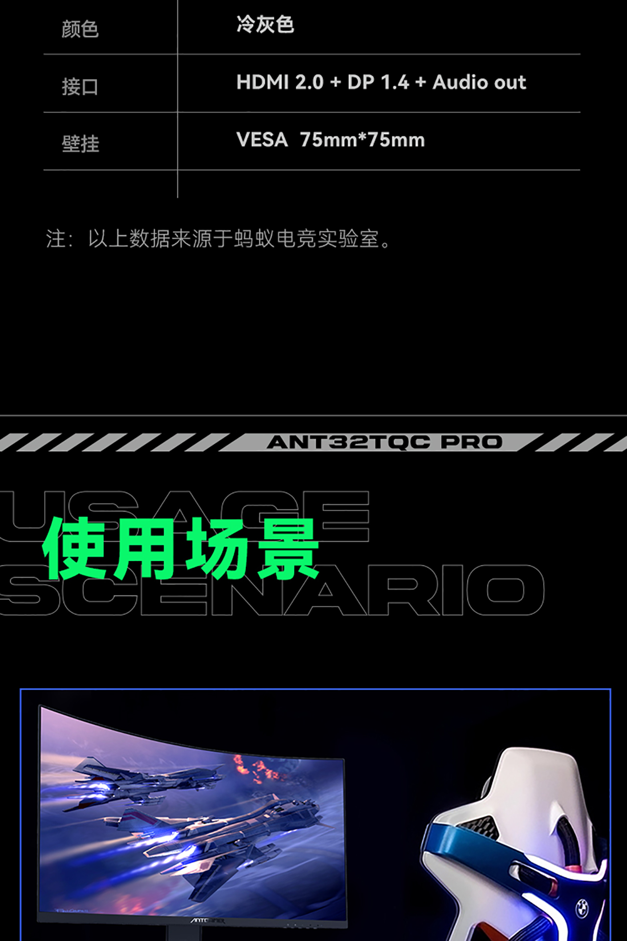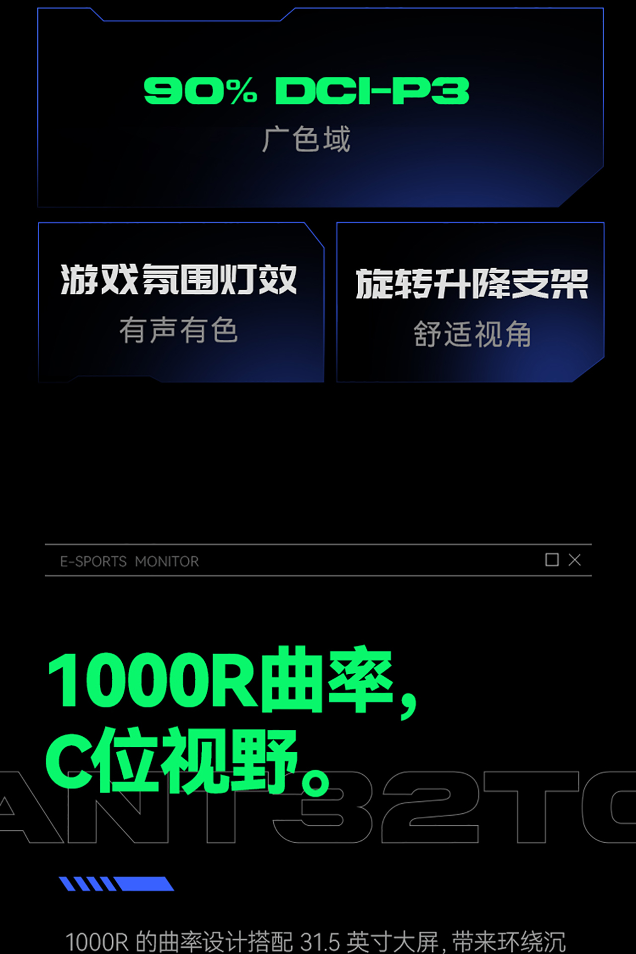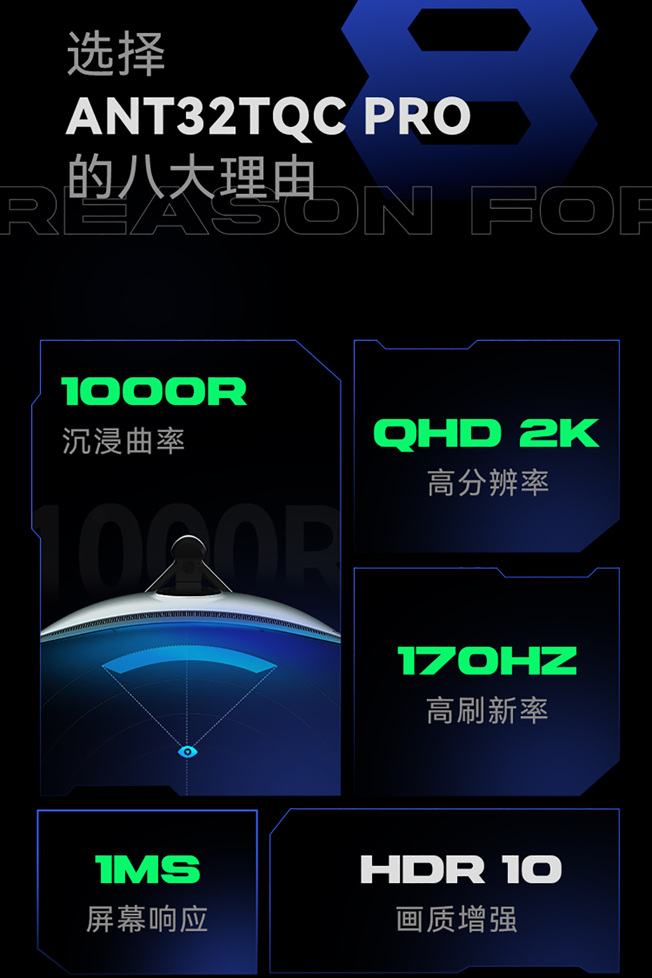 2K170Hz 1000R曲面电竞屏 ANT32TQC PRO
